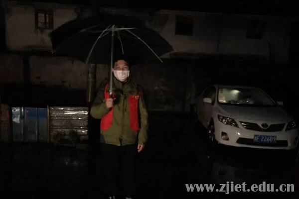 当看到许许多多人投身到抗击肺炎疫情第一线的时候,原本在家中享受寒假的工商管理系企业管理181班陈雷也坐不住了,他主动向自己所处的海宁市周王庙镇双涧村委会申请加入志愿者的队伍,决心守护自己的家乡,冲在了抗疫的前线。