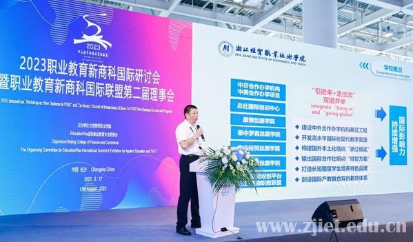 陈德泉校长应邀在2023职业教育新商科国际研讨会上作题为《海外本土化新商科人才培养模式的探索与实践》主旨报告。他从增强宗旨意识,打造“企业主体,四方联动”的产教融合特色模式;树立创新意识,构建“技能核心,五位一体”的海外新商科人才培养特色课程体系;提升革新意识,创设“线上线下、国内国外”相融合的订单式人才培养实施方案等方面,介绍了我校基于“泰中罗勇丝路学院”,在推进合作国产业需求侧和新商科人才培养供给侧的结构要素融合,创新本土化人才培养的具体做法和实践成效。